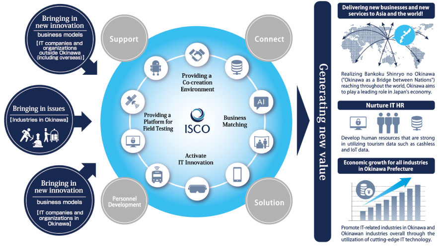 2018년 “일본 오키나와를 국제정보 통신산업의 스마트 허브로 만든다”라는 취지로 오키나와현이 중심이 되어 대형 통신회사 등과 협력하여 '오키나와 IT 이노베이션 전략센터(ISCO)'를 설립하였습니다.